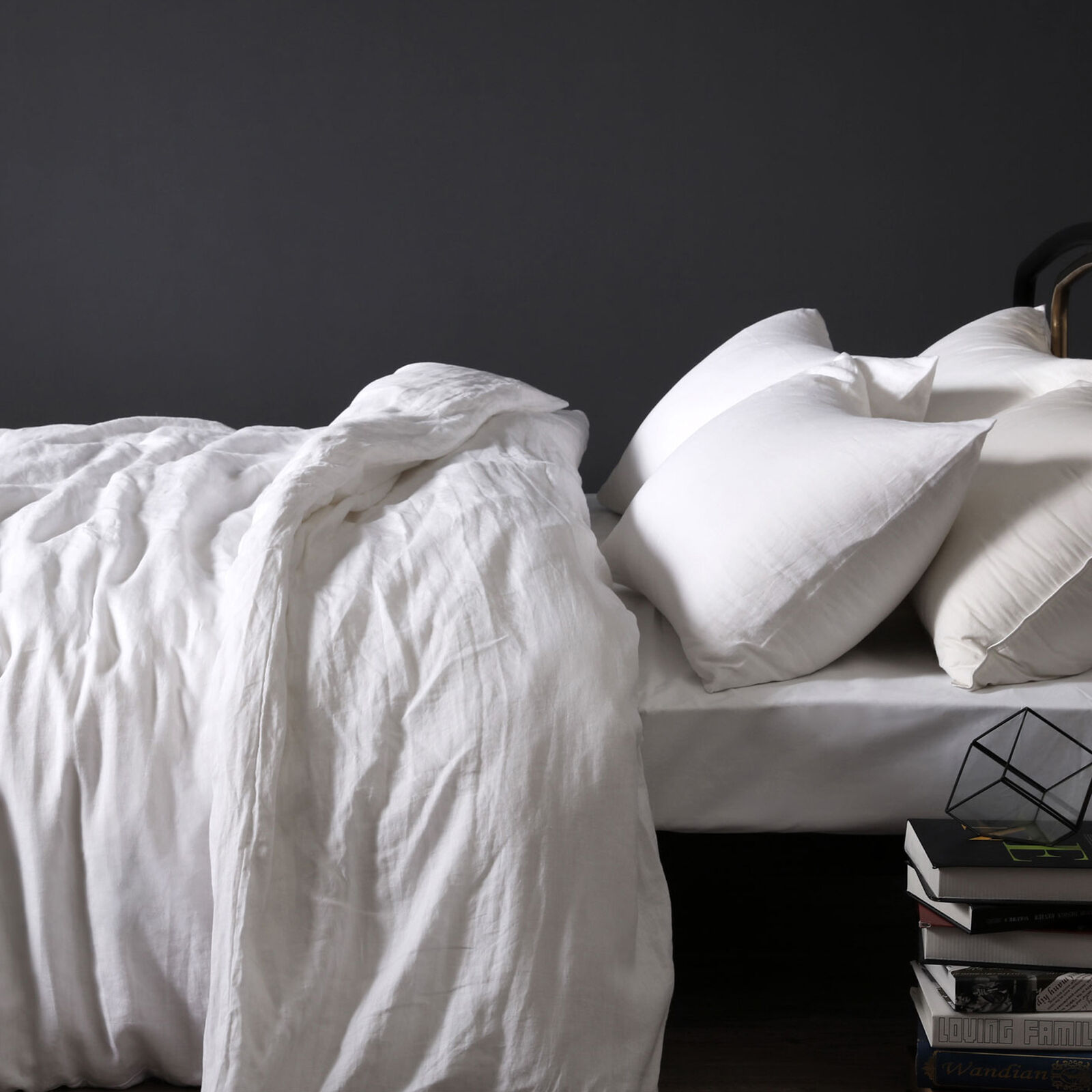 Make a dramatic change to your bedding look with this stunning 100% Linen White Quilt Cover Set by Vintage Design Homewares that gives your bedroom a fresh new aura. It features a simple yet elegant solid colour design that fits perfectly to your existing bedroom decor. Made from comfortable and natural 100% Linen fabric that provides durability and minimises wrinkling.