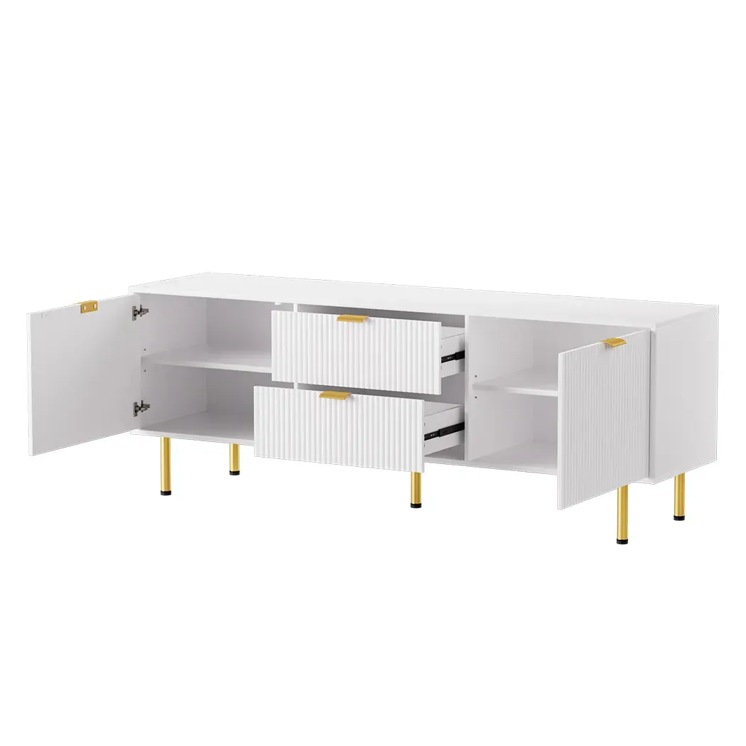 The minimalist yet luxurious style makes it a seamless addition to a wide range of interior décor themes. Whether you’re using it to store media equipment, books, or decorative items, this piece helps maintain a clean and clutter-free environment. The enclosed structure ensures your belongings are kept out of sight, creating an organized living space. Ideal for enhancing your living room's atmosphere with a touch of understated luxury, this TV stand provides the perfect balance of form and function.