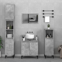 This stylish bathroom furniture set, featuring spacious storage space, is an excellent addition to your bathroom, giving it a tidy and striking appearance! Durable material: The engineered wood is of exceptional quality with a smooth surface and features strength, stability and resistance to moisture.Ample storage space: The bathroom sink cabinet offers ample storage space for keeping your bathroom supplies well organised.Metal feet: The metal feet add a modern and calm style to your interior while ensuring stability.Practical mirror: Use the included mirror to neat your daily dressing. It also adds an excellent appearance to your home decor.Easy-to-clean surface: The bathroom vanity unit is easy to clean with a damp cloth. Warning:To prevent it being overturned, this product must be used with the provided wall attachment device. Good to know:Screws and plugs for inside the wall are not included. We advise to find and use screws and plugs suitable specifically for your walls. If you're not sure, you can consult with a professional. Please read and follow each step of the instructions.