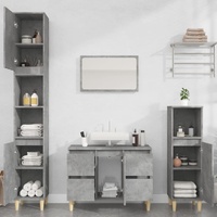 This stylish bathroom furniture set, featuring spacious storage space, is an excellent addition to your bathroom, giving it a tidy and striking appearance! Durable material: The engineered wood is of exceptional quality with a smooth surface and features strength, stability and resistance to moisture.Ample storage space: The bathroom sink cabinet offers ample storage space for keeping your bathroom supplies well organised.Wooden feet: The solid eucalyptus wood feet give the bathroom cabinet a natural and pleasant look while ensuring stability.Practical mirror: Use the included mirror to neat your daily dressing. It also adds an excellent appearance to your home decor.Easy-to-clean surface: The bathroom vanity unit is easy to clean with a damp cloth. Warning:To prevent it being overturned, this product must be used with the provided wall attachment device. Good to know:Screws and plugs for inside the wall are not included. We advise to find and use screws and plugs suitable specifically for your walls. If you're not sure, you can consult with a professional. Please read and follow each step of the instructions.