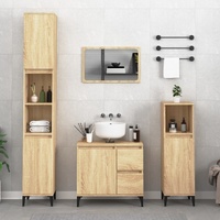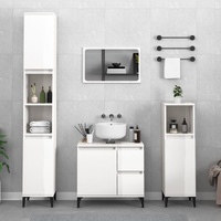 This stylish bathroom furniture set, featuring spacious storage space, is an excellent addition to your bathroom, giving it a tidy and striking appearance! Durable material: The engineered wood is of exceptional quality with a smooth surface and features strength, stability and resistance to moisture.Ample storage space: The bathroom sink cabinet offers ample storage space for keeping your bathroom supplies well organised.Metal feet: The metal feet add a modern and calm style to your interior while ensuring stability.Practical mirror: Use the included mirror to neat your daily dressing. It also adds an excellent appearance to your home decor.Easy-to-clean surface: The bathroom vanity unit is easy to clean with a damp cloth. Warning:To prevent it being overturned, this product must be used with the provided wall attachment device. Good to know:Screws and plugs for inside the wall are not included. We advise to find and use screws and plugs suitable specifically for your walls. If you're not sure, you can consult with a professional. Please read and follow each step of the instructions.