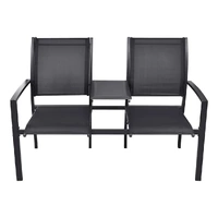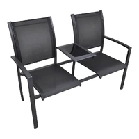 This steel chair, designed with two seats, is a perfect choice for you to enjoy a relaxing moment with a loved one. Thanks to the strong textilene material, the double chair provides you with a safe and comfortable seating. A glass-top shelf is equipped in the middle to keep your drinks or books within reach. Together with the beautiful contemporary design, our double chair presents you a great combination of functionality and style. Featuring a sturdy powder-coated steel frame, the chair is strong, firm and durable, ensuring a long service life. Buy yourself this stylish double chair, and make your garden an enjoyable place!