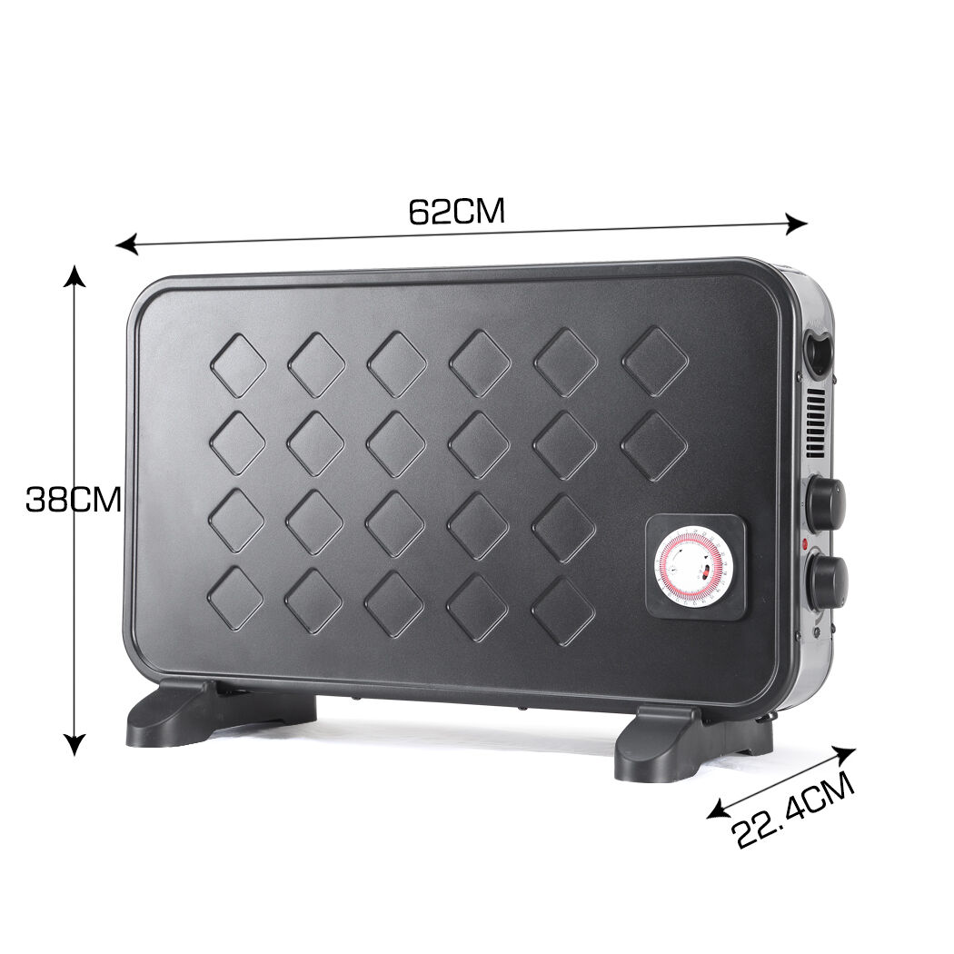 Our Convection Heater is designed as free-standing. Coming with mounting accessories, you just need to find a suitable spot and easily mount it on. It can heat up rapidly to keep you warm and cosy in your space. It has 2000 watts of heating power. The LED display is easy to operate, you can choose heating that you preferred either on chill autumn or freezing winter. Also, this convection heater has a timer, so you can set the time for exact heat just when you want it! This panel heater can sit at any place that you can think of - Living room, dining room, balcony, and pool area. It can also be used commercially at cafes, restaurants, yoga studios, hospitals and so on.
