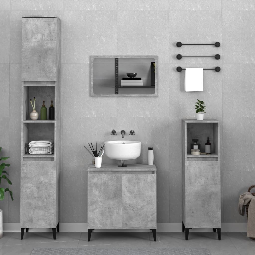 This stylish bathroom furniture set, featuring spacious storage space, is an excellent addition to your bathroom, giving it a tidy and striking appearance! Durable material: The engineered wood is of exceptional quality with a smooth surface and features strength, stability and resistance to moisture.Ample storage space: These bathroom cabinets offer ample storage space for keeping your bathroom supplies well organised.Metal feet: The metal feet add a modern and calm style to your interior while ensuring stability.Practical mirror: Use the included mirror to neat your daily dressing. It also adds an excellent appearance to your home decor.Easy-to-clean surface: The bathroom unit is easy to clean with a damp cloth. Warning:To prevent it being overturned, this product must be used with the provided wall attachment device. Good to know:Screws and plugs for inside the wall are not included. We advise to find and use screws and plugs suitable specifically for your walls. If you're not sure, you can consult with a professional. Please read and follow each step of the instructions.