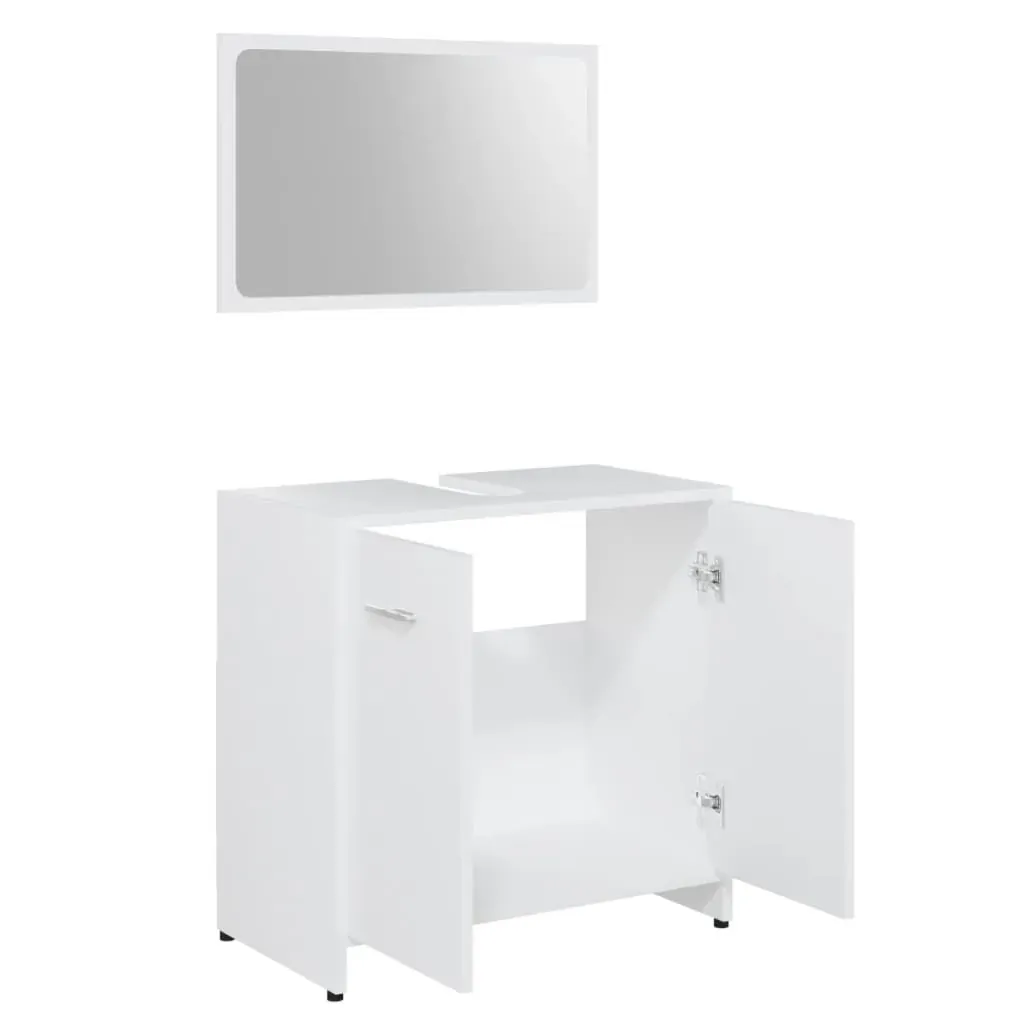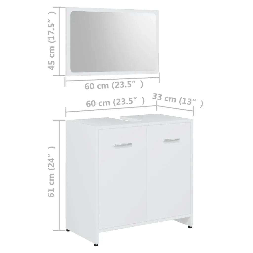This stylish bathroom furniture set, featuring 1 high cabinet, 1 under basin cabinet and 1 mirror, creates additional storage space for your bathroom with a stunning and neat appearance. Made of premium engineered wood, this set is durable and stable. The chic high cabinet has 6 compartments and 2 doors, offering spacious space to store items in your bathroom. The basin cabinet has 1 compartment and 2 doors, providing ample space to store your toiletries, beauty products and various kinds of smaller items. You can even organise combs, cosmetics, toothbrushes and toothpaste in the shelves conveniently within reach. The mirror adds an excellent appearance to your existing home decor. Additionally, this bathroom set is easy to clean with a damp cloth.