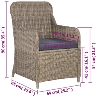 Our dining set is a perfect combination of style and functionality and will become the focal point of your garden or patio! The table and chairs are made of PE rattan, which is lightweight, water-resistant, easy to clean and designed to be used outdoors for year round. The powder-coated steel frames also bring super stability and ensure their excellent durability. The ergonomically-designed shape and thickly-padded, removable cushions with foam filling will provide the ultimate seating comfort. The low-maintenance polyester cushion covers can be easily removed and washed. It also comes with an elegant table to match our chairs. This set of furniture is easy to assemble. Delivery includes 2 armchairs, 1 table and 2 seat cushions. Note: We recommend covering the furniture set in the rain, snow or frost.