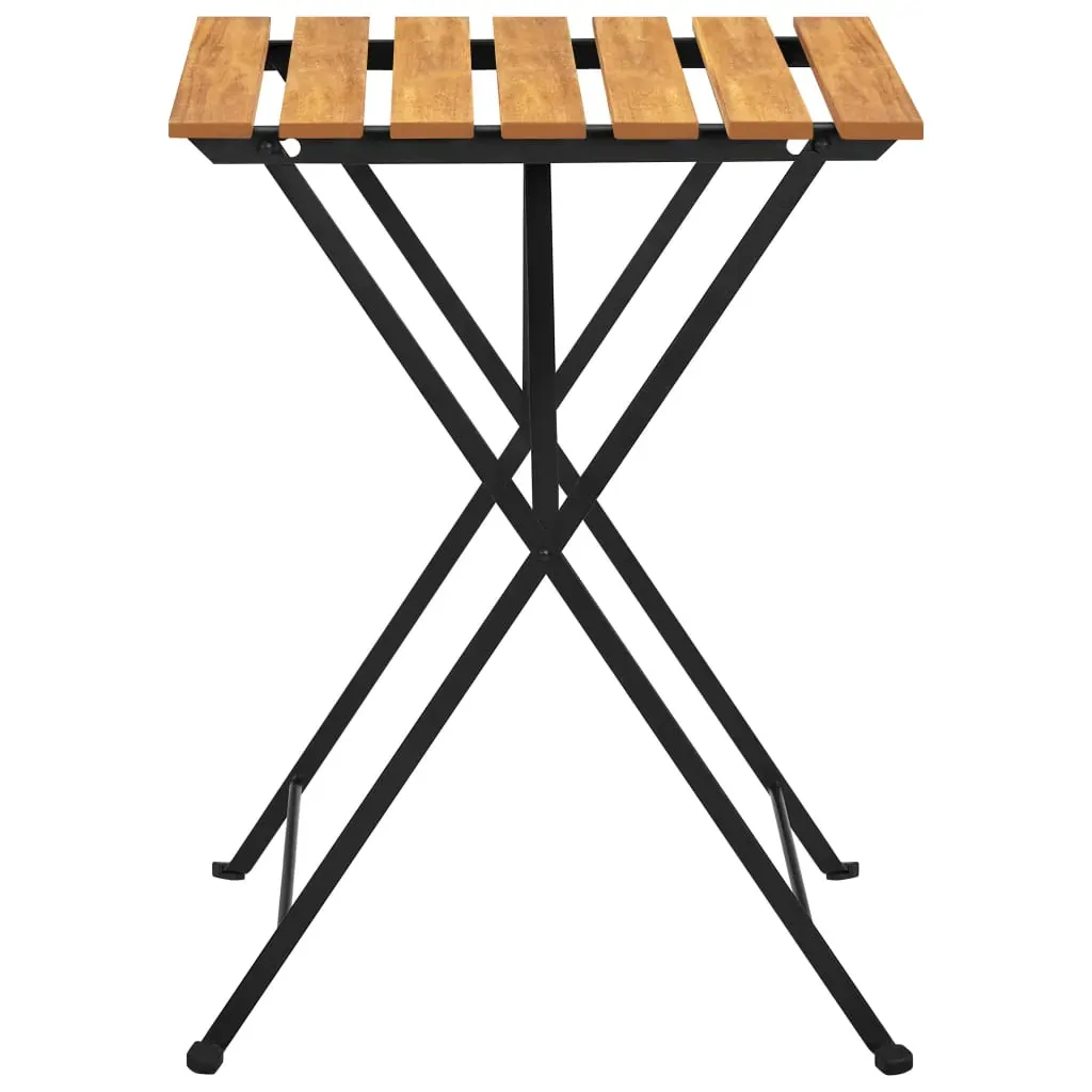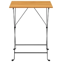 This classic wooden bistro set consists of 1 table and 2 chairs and will make a great addition to your indoor or outdoor living space. The table and chairs are made of solid acacia wood and sturdy steel, making the set weather resistant and highly durable. The table and chairs can be folded to save space when not in use. The whole set is an ideal choice for intimate al fresco dining in the garden or on the patio. Note: In order to extend the life of your outdoor furniture, we recommend you to clean it regularly and do not leave it outdoors without protection unnecessarily.Clean: Use a mild soap solutionStoring: If possible, store in a cool, dry place indoors. If the product is stored outdoors, protect it with a waterproof cover. Wipe and dry the excess water or snow from flat surfaces after a rain or snowfall. Allow sufficient air circulation to avoid moisture-related damage.