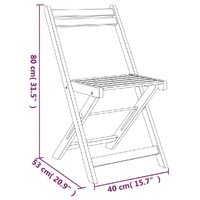 This wooden folding bistro set, made of solid acacia wood, is an excellent choice for dining or relaxing in the garden. Durable material: Solid acacia wood is a beautiful natural material. Acacia wood is a tropical hardwood, which is dense, sturdy, and durable.Foldable design: The table and chairs can be easily folded away when not in use, for easy storage and transportation.Stable frame: The wooden frames ensure sturdiness and stability for the bistro set. Good to know:To make assembly as easy as possible, each product is delivered with a manual. Note:To make sure your outdoor furniture stays beautiful, we recommend protecting it with a waterproof cover.