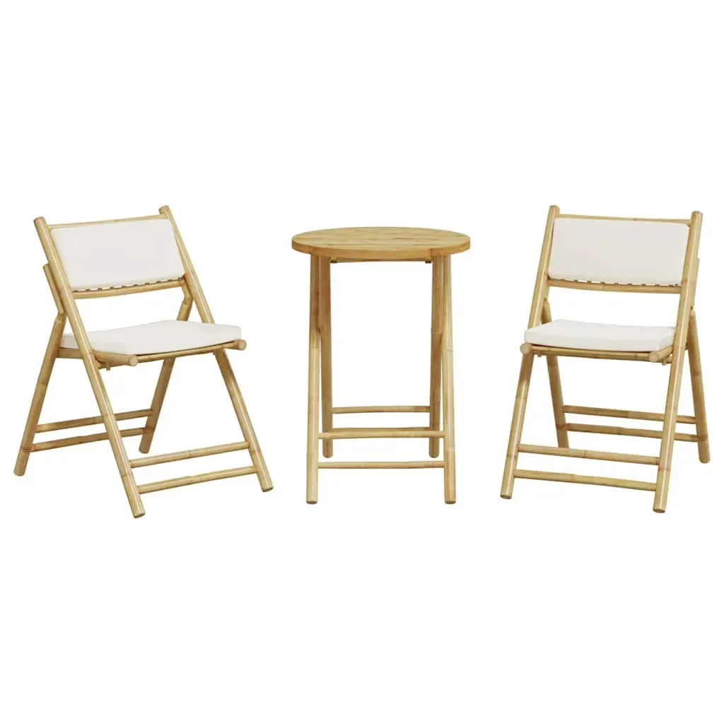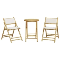 Enjoy a coffee or have a chat with your family and friends in the garden, backyard, or on the balcony with this comfortable bistro set! Durable material: Bamboo is known for its flexibility and hardness. Bamboo furniture is a good option when you want strong furniture made from natural materials.Soft and durable: Fabric features a simple and clean look while remaining breathable and long-lasting.Comfortable seat experience: This outdoor furniture set, complete with thickly padded cushions, offers a comfortable seating experience.Foldable design: The bistro set can be easily folded away when not in use, for easy storage and transportation.Removable and washable cover: These seat cushions feature removable covers for easy washing and maintenance. The cushion covers have a flap at the back for easy attachment to the backrests. Good to know:To make sure your outdoor furniture stays beautiful, we recommend protecting it with a waterproof cover.