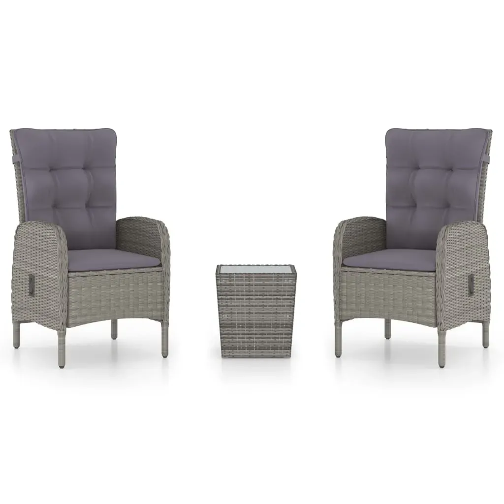 This stylish garden bistro set is meant to be the focal point of your garden or patio! It is a great choice for al fresco relaxing in the outdoor spaces! The powder-coated steel frames make the table and chairs strong and sturdy. Thanks to their lightweight constructions, all items are easy to move. The weather-resistant PE rattan and the glass top are easy to clean with a damp cloth. The armchairs are designed with curved backrests and armrests for maximum comfort. Cushions are included for added support, and the zipped cover is removable for easy washing.