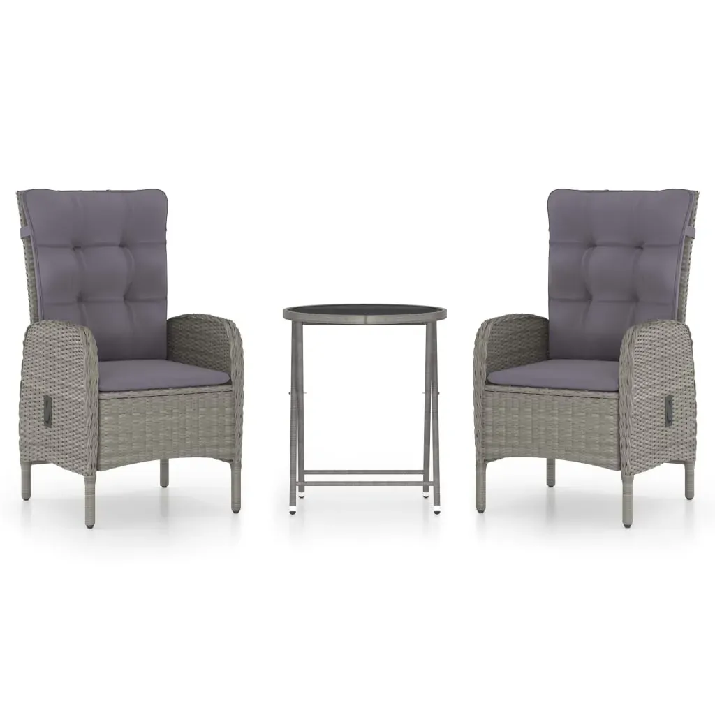 This stylish garden bistro set is meant to be the focal point of your garden or patio. It is a great choice for al fresco relaxing in the outdoor spaces! The powder-coated steel frames make the table and chairs strong and sturdy. Thanks to the lightweight constructions, all items are easy to move. The weather-resistant PE rattan and the glass top are easy to clean with a damp cloth. The armchairs are designed with curved backrests and armrests for maximum comfort. Cushions are included for added support, and the zipped cover is removable for easy washing. When not in use, the table can be folded for easy storage.
