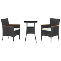 This stylish garden bistro set provides you with a leisurely and comfortable time with your family and friends. Durable material: PE rattan, also known as poly rattan, is weather resistant and easy to clean. It remains beautiful on the outside for a long period of time. It offers great quality, convenience and an aesthetic look. Sturdy and stable frame: The powder-coated steel frame of the garden furniture set ensures sturdiness and stability. Comfortable seat experience: Designed with backrests and armrests, these garden bistro chairs provide maximum comfort. The thickly padded cushions of the bistro chairs also provide extra comfort while sitting. Sturdy tabletop: The sturdy tabletop of the bistro table is perfect for placing coffee, drinks, vases, fruit bowls, or other decorative items. Note:To make sure your outdoor furniture stays beautiful, we recommend protecting it with a waterproof cover.
