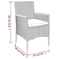 This stylish garden bistro set provides you with a leisurely and comfortable time with your family and friends. Durable material: PE rattan, also known as poly rattan, is weather resistant and easy to clean. It remains beautiful on the outside for a long period of time. It offers great quality, convenience and an aesthetic look. Sturdy and stable frame: The powder-coated steel frame of the garden furniture set ensures sturdiness and stability. Comfortable seat experience: Designed with backrests and armrests, these garden bistro chairs provide maximum comfort. The thickly padded cushions of the bistro chairs also provide extra comfort while sitting. Sturdy tabletop: The sturdy tabletop of the bistro table is perfect for placing coffee, drinks, vases, fruit bowls, or other decorative items. Note:To make sure your outdoor furniture stays beautiful, we recommend protecting it with a waterproof cover.