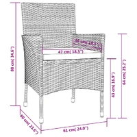 This stylish garden bistro set provides you with a leisurely and comfortable time with your family and friends. Durable material: PE rattan, also known as poly rattan, is weather resistant and easy to clean. It remains beautiful on the outside for a long period of time. It offers great quality, convenience and an aesthetic look. Sturdy and stable frame: The powder-coated steel frame of the garden furniture set ensures sturdiness and stability. Comfortable seat experience: Designed with backrests and armrests, these garden bistro chairs provide maximum comfort. The thickly padded cushions of the bistro chairs also provide extra comfort while sitting. Sturdy tabletop: The sturdy tabletop of the bistro table is perfect for placing coffee, drinks, vases, fruit bowls, or other decorative items. Note:To make sure your outdoor furniture stays beautiful, we recommend protecting it with a waterproof cover.