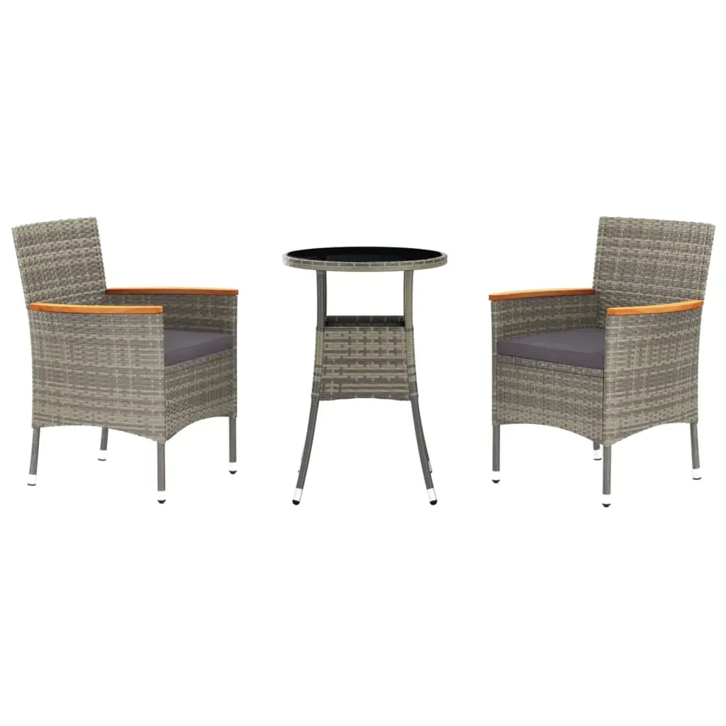 This stylish garden bistro set provides you with a leisurely and comfortable time with your family and friends. Durable material: PE rattan, also known as poly rattan, is weather resistant and easy to clean. It remains beautiful on the outside for a long period of time. It offers great quality, convenience and an aesthetic look. Sturdy and stable frame: The powder-coated steel frame of the garden furniture set ensures sturdiness and stability. Comfortable seat experience: Designed with backrests and armrests, these garden bistro chairs provide maximum comfort. The thickly padded cushions of the bistro chairs also provide extra comfort while sitting. Sturdy tabletop: The sturdy tabletop of the bistro table is perfect for placing coffee, drinks, vases, fruit bowls, or other decorative items. Note:To make sure your outdoor furniture stays beautiful, we recommend protecting it with a waterproof cover.