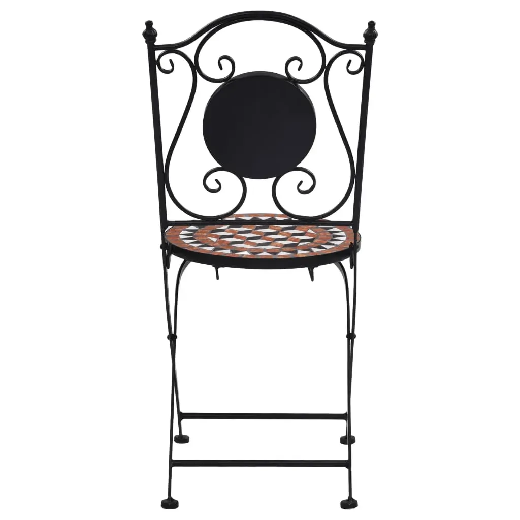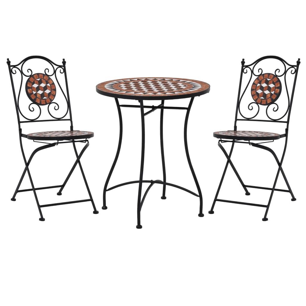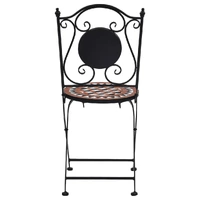 Add a romantic touch to your garden, patio, or balcony with this mosaic bistro set. It will be a great pleasure to chat with your friends or have a cuppa while relaxing on this decorative yet functional garden furniture set. Thanks to its strong powder-coated iron frame and ceramic tiles, our table and chairs are sturdy, durable, and easy to clean. Delivery includes 1 table and 2 chairs. Please note this set is not suitable to be left outside in cold condition.