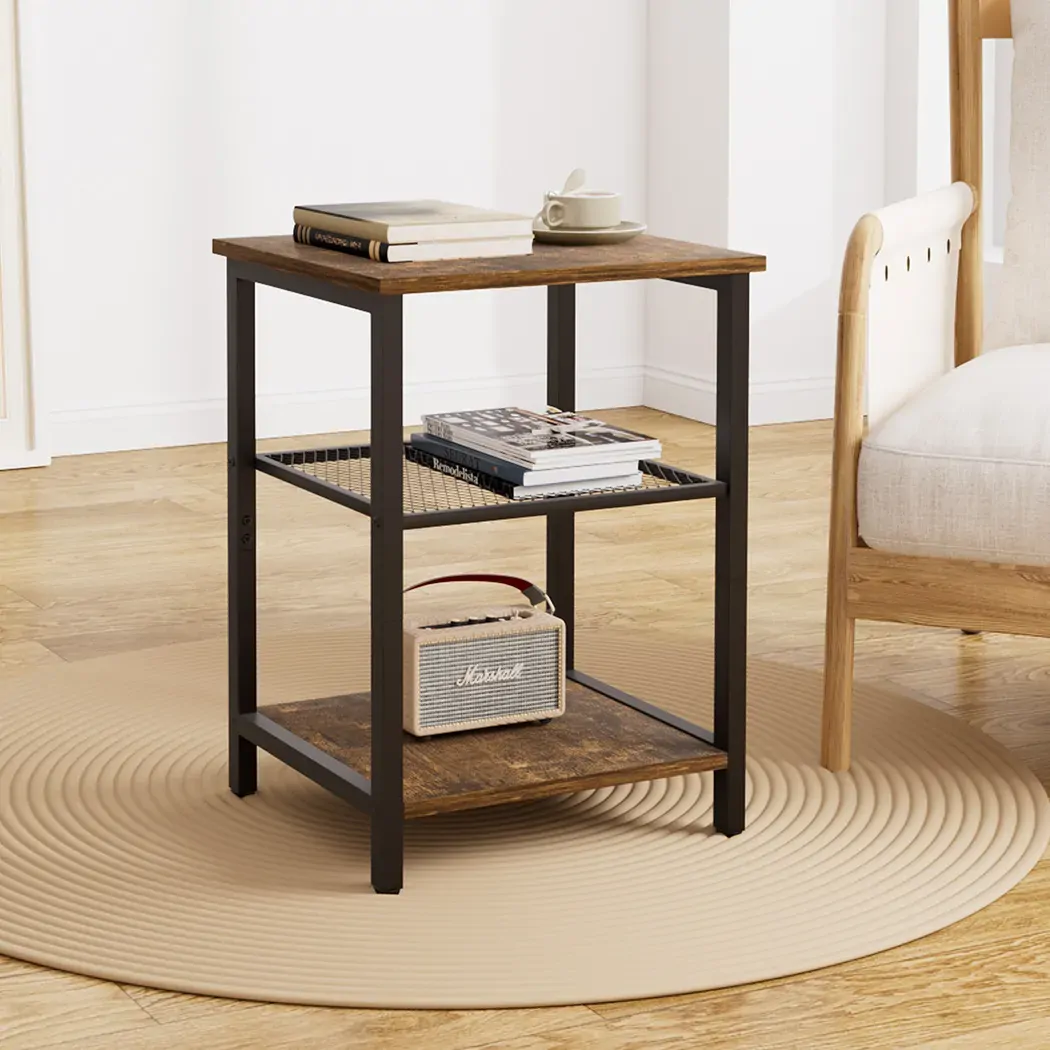 This side table has 3 layers and provides a lot of space. You can put books, table lamps, phones, keys, remote controls, cups, etc.