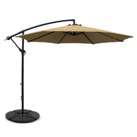 It's an outdoor umbrella with a creative difference. Not just in function but in form as well. Introducing the Cantilevered Outdoor Umbrella.As alfresco relaxing and dining at home is fast becoming a favourite past time for many people, our Outdoor Umbrella is a perfect complement to any outdoor furniture setting and décor. Featuring an elegant waterproof and UV-resistant fabric top covering 3m in diameter, the Outdoor Umbrella utilises a cantilevered side post to allow maximum useable space under the shade. No centre pole to get in the way of your enjoyment.Better still, the Umbrella top and base can be adjusted and pivoted towards the sun for the right amount and angle of shade. Definitely a lot less hassle than shifting the umbrella about to catch the right cover. Opening and closing is also made quick and easy with a user-friendly cranking system and the total assembly can be stored away with minimum fuss. Not least, the entire steel frame, such as the 8-rib top supports, and supporting pole are power-coated for toughness while the steel base can be readily bolted in place or weigh down.So deck out in style and enjoy the best of fun under the sun without any weather worries with Cantilevered Outdoor Umbrella.