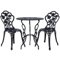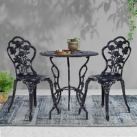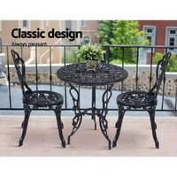 A truly classic design with lots of vintage appeal. Our Gardeon 3-piece Bistro Set is just perfect to wind back the era with an updated build. Made of cast aluminium with cast iron, the table and chairs set are designed to be rust-resistant with a powder-coated finish. The exquisite floral motifs really help to bring out the iconic character of this wondrous set. Better still, they are made to last with high weight capacities for both chairs and table. The set is suitable for use outdoors or indoors. Rubber feet pads are also affixed to its legs to prevent scratches to your pristine deck or floor. Not least, a parasol hole is provided in the table to add a parasol if needed.