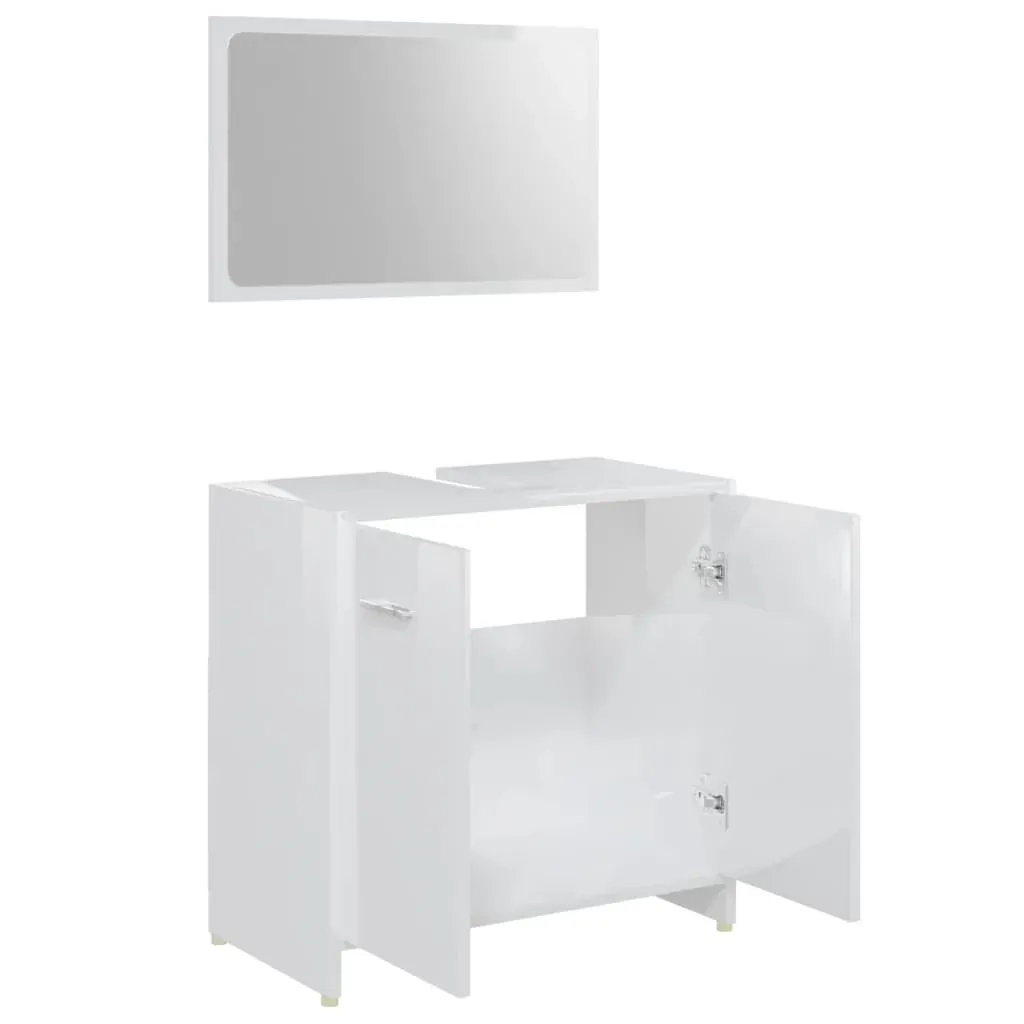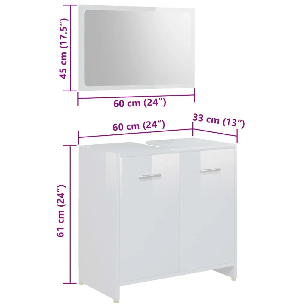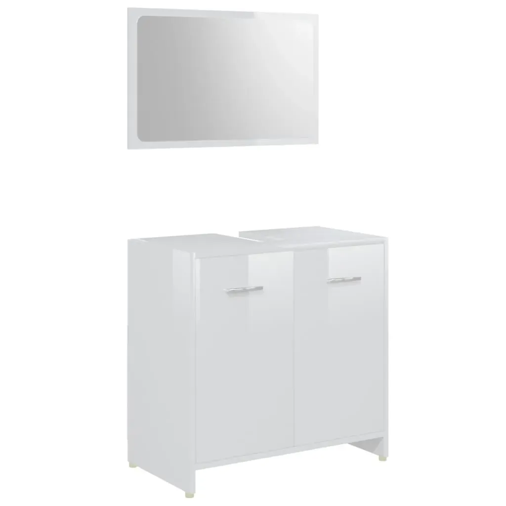 This stylish bathroom furniture set, featuring 1 high cabinet, 1 medium cabinet, 1 under basin cabinet and 1 mirror, creates additional storage space for your bathroom with a stunning and neat appearance. Made of premium engineered wood, this set is durable and stable. The chic high cabinet has 6 compartments and 2 doors while the medium cabinet has 3 compartments and 1 door. Both offer spacious space to store your essential items in your bathroom. The basin cabinet, featuring 1 compartment and 2 doors, provides ample space to store your toiletries, beauty products and smaller items. You can even place combs, cosmetics, toothbrushes, toothpaste, etc., neatly organised and within reach. The mirror adds a unique appearance to your existing home decor. Additionally, this bathroom set is easy to clean with a damp cloth.