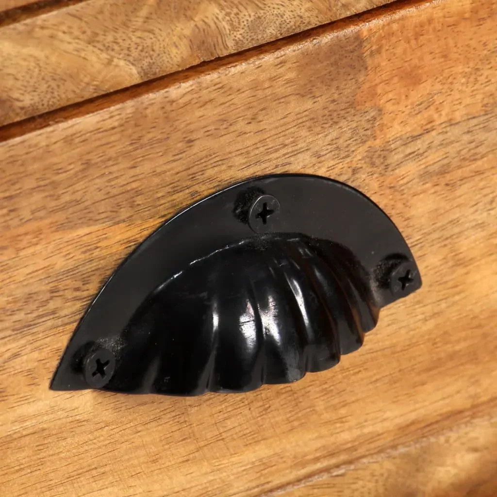 Equal parts elegant and sophisticated, this 4-tier wooden bookcase with 6 drawers gives a nod to vintage charm and industrial style with its solid mango wood and powder-coated steel frame. This bookshelf presents an ideal solution for storing and displaying your book collection, magazines, documents, as well as decorative items like photo frames and collectables. The bookcase has a sturdy powder-coated steel frame which gives it an industrial look. Made of solid mango wood, the shelves and drawers are stable, durable and beautiful and exude a spectacular retro style. Every step of the process is carried out with the greatest care, be it polishing, painting or lacquering. The craftsmanship and the beautiful wood grains make every piece of furniture unique and slightly different from the next. The highboard is easy to assemble. Important note: Colours vary from piece to piece, making each of our bookcases unique. The delivery is random, ensuring the exclusivity and individuality of your product.