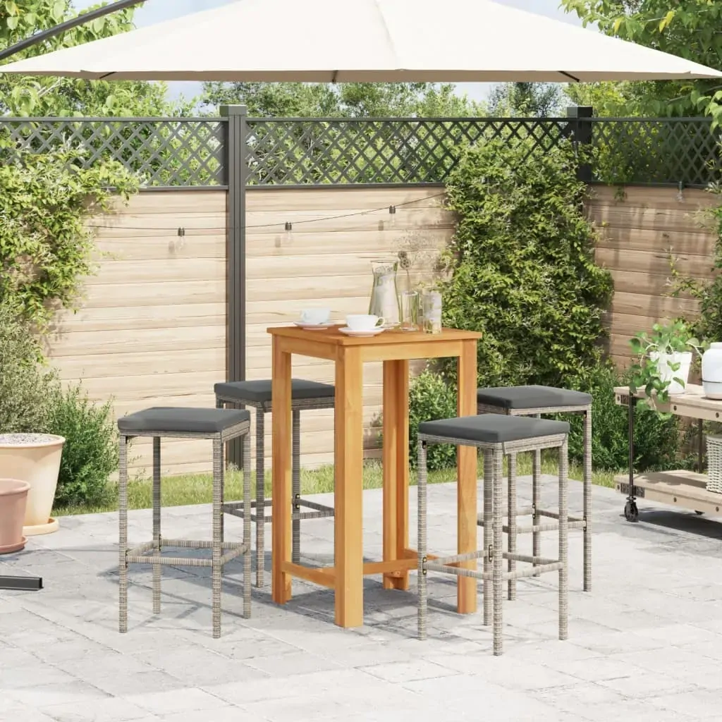 This garden bar set with an elegant and contemporary design will be a great choice for dining or relaxing in the garden. Durable material: PE rattan, also known as poly rattan, is a strong, low-maintenance synthetic material that looks like natural rattan. It's lightweight, easy to clean, and commonly used for outdoor furniture due to its durability and weather-resistant properties. Made of lightweight PE rattan, these bar stools are sturdy and easy to move. Sturdy tabletop: Solid acacia wood is a beautiful natural material. Acacia wood is a tropical hardwood, which is dense, sturdy, and durable. Made of solid acacia wood, this bar table is sturdy and stable. You can place your snacks, drinks and any of your favourite decorations. Comfortable seating experience: The thickly padded seat cushions and the built-in footrests add additional seating comfort for the stool. Removable and washable cover: These seat cushions feature removable covers for easy washing and maintenance. Good to know:To make sure your outdoor furniture stays beautiful, we recommend protecting it with a waterproof cover.