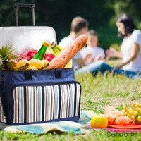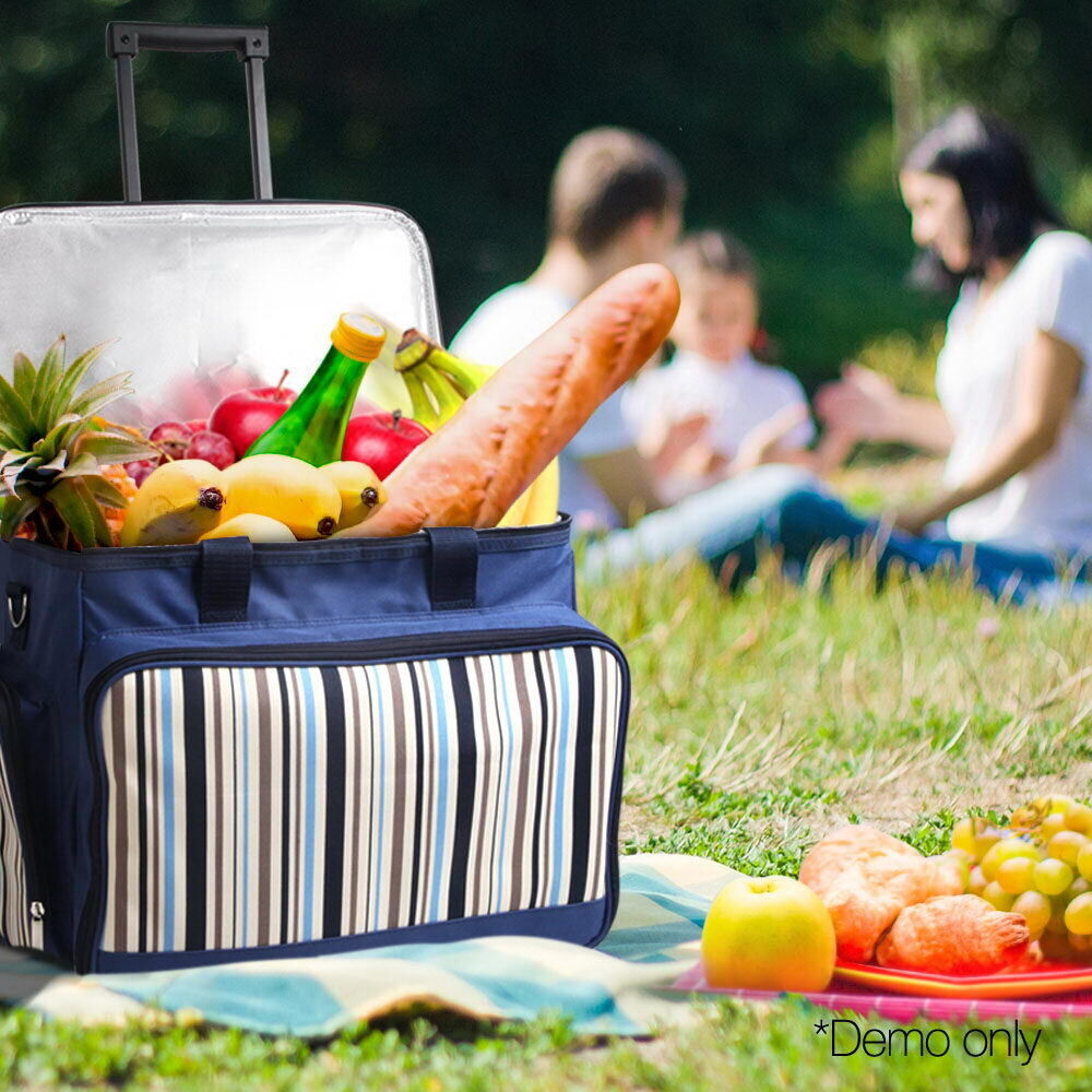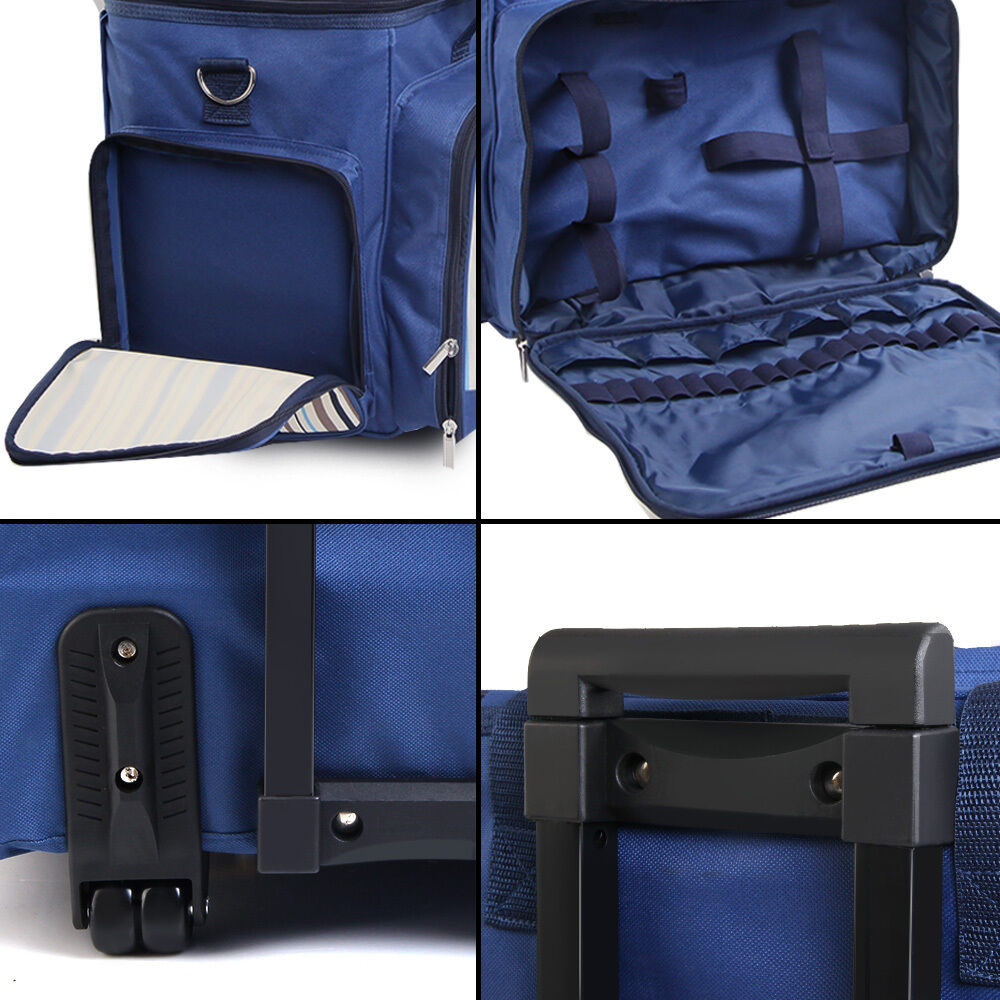 Crafted from quality waterproof fabric, our spacious Picnic Trolley Bag features meticulous craftsmanship with sturdy straps and a built-in thermally-insulated cooler bag to keep your sumptuous food fresh and warm, and drinks refreshingly cool. There are also multiple side pockets for extra storage too.