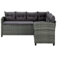 Enjoy chatting with your family members and friends in your outdoor space on this poly rattan garden lounge set with cushions! This comfy outdoor lounge set, featuring a powder-coated steel frame covered with PE rattan, is sturdy and easy to clean, making it ideal for daily outdoor use. Thanks to its lightweight construction, you can move the set easily. The thickly padded cushions add extra comfort in your lounging time. The corner sofa and stools provide enough seating space for family gatherings. In addition, the coffee table is ideal for placing drinks, food and decorative items. Note: We recommend covering the set in the rain, snow and frost.