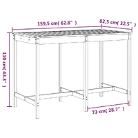 Take a sip of your favourite drink or enjoy a nice meal with your family and friends around this wooden garden bar set! Solid pine wood: This bar set is made of solid pine wood. Solid pine wood is a beautiful natural material. Pine wood has a straight grain, and the knots give the material its signature, rustic look.Sturdy top: The bar table of the pub set has a sturdy top, which is perfect for placing your drinks, food and other decorative items.Comfortable seating: The backrest and footrest of the wooden bar stool provide a comfortable seating experience to relax your back and legs.Wide applications: With its minimalist design, the patio bar set can be integrated into any corner of the garden, patio, balcony, backyard, etc. Good to know:To make sure your outdoor furniture stays beautiful, we recommend protecting it with a waterproof cover.