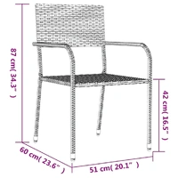 Enjoy a nice meal or afternoon tea in your outdoor space with this garden dining set! Featuring an elegant design, it will become the focal point of your garden and patio! Durable material: PE rattan, also known as poly rattan, is weather resistant and easy to clean. It remains beautiful on the outside for a long period of time. It offers great quality, convenience and an aesthetic look.Sturdy frame: The powder-coated steel frames make the outdoor dining set sturdy and stable for daily outdoor use.Practical tabletop: The smooth tabletop of the dining table is made of tempered glass which is easy to clean with a damp cloth. Additionally, the sturdy tabletop is perfect for placing meals, drinks, and other decorative items.Flexible design: Thanks to the lightweight construction, these outdoor chairs are easy to move and can be stacked to save space when not in use. Good to know:To make sure your outdoor furniture stays beautiful, we recommend protecting it with a waterproof cover.