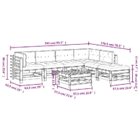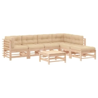 This wooden garden lounge set, standing out with the slatted design and soft cushions, will make a great addition to your garden, patio, or terrace for enjoying a cosy time with your family or friends. Solid pine wood: Solid pine wood is a beautiful natural material. Pine wood has a straight grain, and the knots give the material its signature, rustic look.Sturdy and stable frame: The wooden frame makes the lounge set sturdy and stable for daily outdoor use.Comfortable seat experience: The backrest and armrest add extra seating comfort for the garden furniture set. Also, the thickly padded cushions provide comfort for your sitting time.Modular design: The sofa set is flexible and easy to move around. You can combine it with other modular segments in the webshop to create your own personal garden lounge set configurations! Good to know:To make sure your outdoor furniture stays beautiful, we recommend protecting it with a waterproof cover.