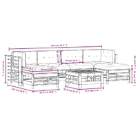 This wooden garden lounge set, standing out with the slatted design and soft cushions, will make a great addition to your garden, patio, or terrace for enjoying a cosy time with your family or friends. Solid pine wood: Solid pine wood is a beautiful natural material. Pine wood has a straight grain, and the knots give the material its signature, rustic look.Sturdy and stable frame: The wooden frame makes the lounge set sturdy and stable for daily outdoor use.Comfortable seat experience: The backrest and armrest add extra seating comfort for the garden furniture set. Also, the thickly padded cushions provide comfort for your sitting time.Modular design: The sofa set is flexible and easy to move around. You can combine it with other modular segments in the webshop to create your own personal garden lounge set configurations! Good to know:To make sure your outdoor furniture stays beautiful, we recommend protecting it with a waterproof cover.