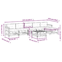 This wooden garden lounge set, standing out with the slatted design and soft cushions, will make a great addition to your garden, patio, or terrace for enjoying a cosy time with your family or friends. Solid pine wood: Solid pine wood is a beautiful natural material. Pine wood has a straight grain, and the knots give the material its signature, rustic look.Sturdy and stable frame: The wooden frame makes the lounge set sturdy and stable for daily outdoor use.Comfortable seat experience: The backrest and armrest add extra seating comfort for the garden furniture set. Also, the thickly padded cushions provide comfort for your sitting time.Modular design: The sofa set is flexible and easy to move around. You can combine it with other modular segments in the webshop to create your own personal garden lounge set configurations! Good to know:To make sure your outdoor furniture stays beautiful, we recommend protecting it with a waterproof cover.