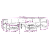 This wooden garden lounge set, standing out with the slatted design and soft cushions, will make a great addition to your garden, patio, or terrace for enjoying a cosy time with your family or friends. Solid pine wood: Solid pine wood is a beautiful natural material. Pine wood has a straight grain, and the knots give the material its signature, rustic look.Sturdy and stable frame: The wooden frame makes the lounge set sturdy and stable for daily outdoor use.Comfortable seat experience: The backrest and armrest add extra seating comfort for the garden furniture set. Also, the thickly padded cushions provide comfort for your sitting time.Modular design: The sofa set is flexible and easy to move around. You can combine it with other modular segments in the webshop to create your own personal garden lounge set configurations! Good to know:To make sure your outdoor furniture stays beautiful, we recommend protecting it with a waterproof cover.