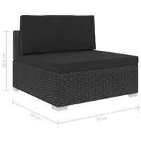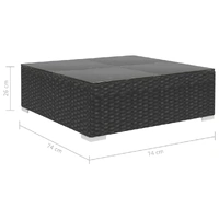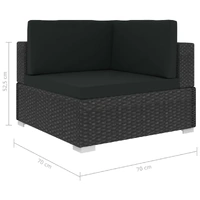 This poly rattan sofa set, consisting of 1 corner sofa, 3 middle sofas, 1 coffee table, 3 footstools, 5 back pillows and 7 seat cushions, will form a stylish seating area for your garden or patio. Thanks to the water-resistant PE rattan, the patio sofa set is easy to clean, hardwearing and suitable for daily outdoor use. The powder-coated steel frames make the set sturdy and stable. It is lightweight and the modular sections can be easily combined into different configurations. This set is also delivered with the highly comfortable, thickly-padded seat cushions and back pillows for the ultimate comfort. The low-maintenance polyester covers can also be removed and washed. This set is easy to assemble. Note: We recommend covering the set during rain, snow and frost for its best service to last.