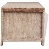 Made of solid acacia wood with a brushed finish, this wooden TV cabinet is highly durable and has a rustic look and feel that will suit any bedroom or living room. This TV stand features a spacious cabinet for knick-knacks and two shelves for DVD players, media carriers, or gaming consoles. Two convenient cable outlets allow you to neatly keep all wires out of sight. Assembly is very easy.