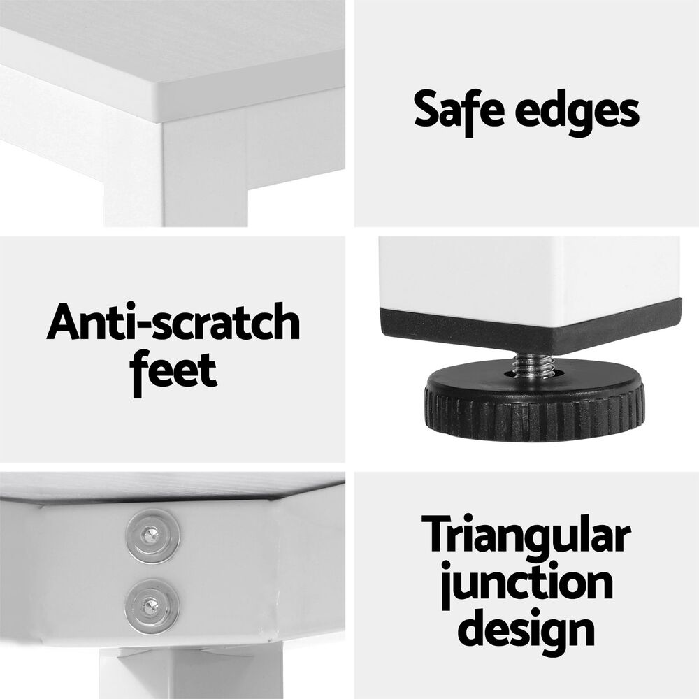 Conquer your workload in style and comfort with this versatile computer desk! The wide desktop provides ample space for your monitors, keyboards, and all your office essentials. While offering generous surface area, the 15mm thick particle board desktop maintains a sleek profile. The sturdy metal frame ensures stability, while anti-scratch feet protect your floor from damage. This modern and stylish desk has an easy assembly process and also prioritises your safety and comfort with smooth, rounded edges.