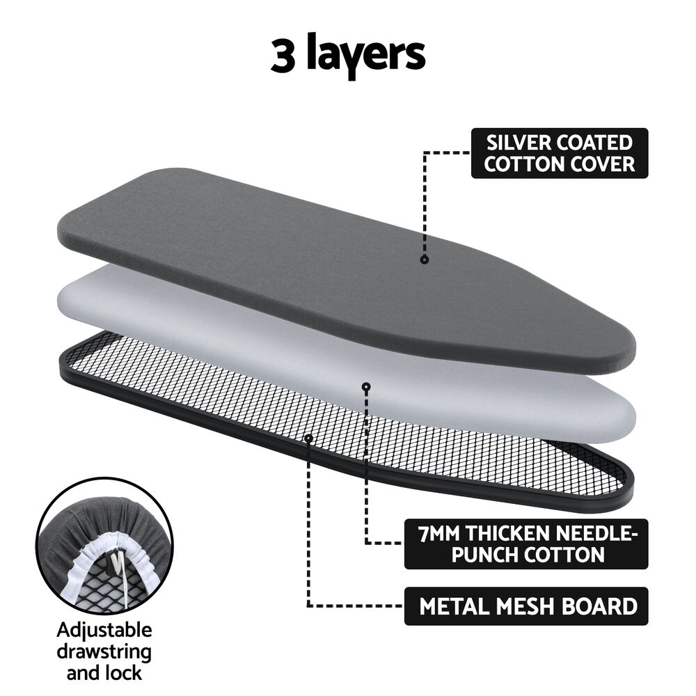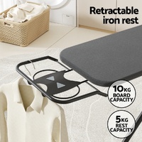 Discover our freestanding Artiss ironing board with a foldaway iron holder for convenience. Folds effortlessly for storage, boasts a robust metal frame, secure locking mechanism, height-adjustable handle, and non-slip legs for stability.