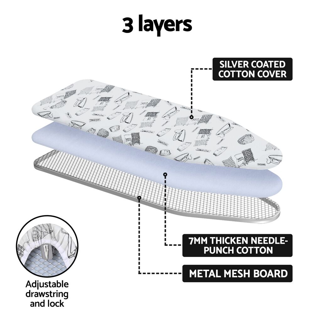 Discover our versatile Artiss ironing board, featuring a sturdy metal frame, adjustable height for comfort, a durable cover in a stylish pattern, and foldable design for easy storage. Ideal for efficient ironing at home.