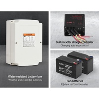 Power source: Solar-powered with 2 spare batteries (12V 20Ah)