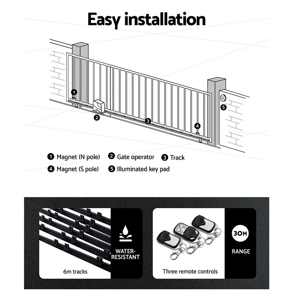 Introducing our LockMaster Solar-Powered Gate Opener, designed for effortless and eco-friendly gate control. This advanced system ensures a smooth operation with gentle start and stop features, enhancing the lifespan of your gate. Safety is paramount; it automatically stops or reverses upon detecting any obstruction, ensuring peace of mind. Equipped with an emergency release key for power failures and a programmable auto-close feature, it offers convenience at your fingertips. Included remote control makes access seamless and secure.