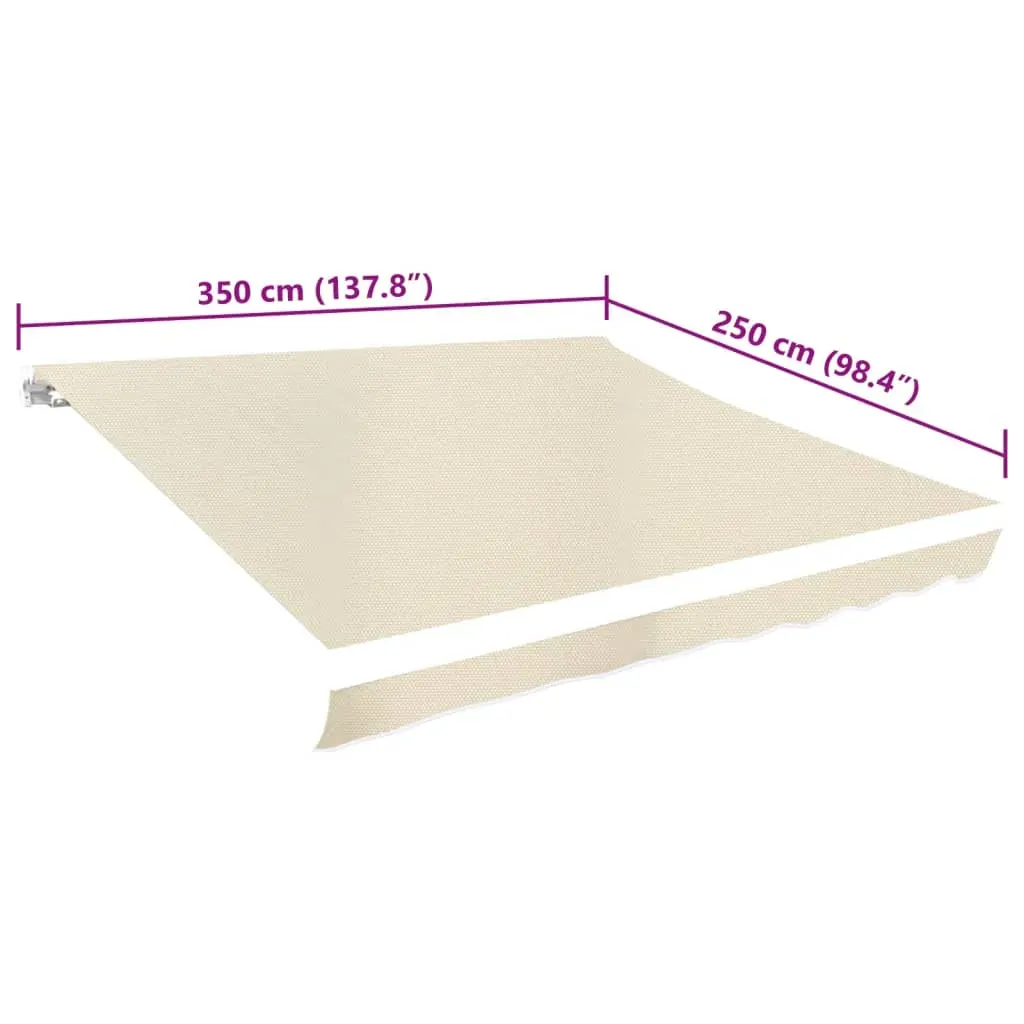 This awning canvas, which could be mounted on your existing awning frame, is a perfect choice to protect you from harmful UV rays, providing you with a cool and pleasant shade in your patio, terrace or garden. It is ideal for awning frames with a dimension of 3.5 x 2.5 m. With the attractive colour, the awning top will become a perfect addition to your garden. Made of UV resistant, anti-fade polyester, this awning canvas is very durable for years of service. Note: This awning top consists of 1 main fabric and 1 valance. Delivery does not include the frame. It is a high quality replacement top for people that already have a frame.