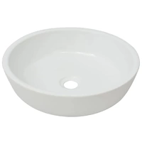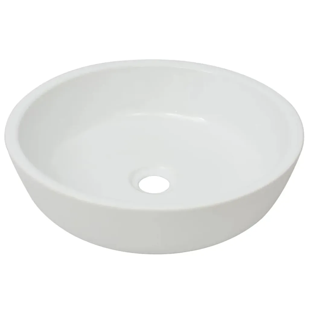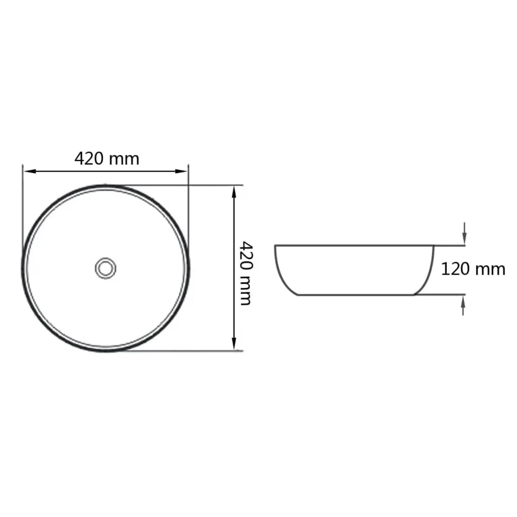 This round wash basin, made of premium ceramic, will be a stylish addition to any bathroom, washroom or powder room. Its glazed surface brings itself a modern yet elegant design. This artistic ceramic basin is more than just a practical vessel for everyday use, but it is an adornment for your living space. It will definitely suit any interior style. In addition, the basin is quite easy to clean. The drain hole is 4.5 cm in diameter. Please note that the tap and the drain are not included in delivery.