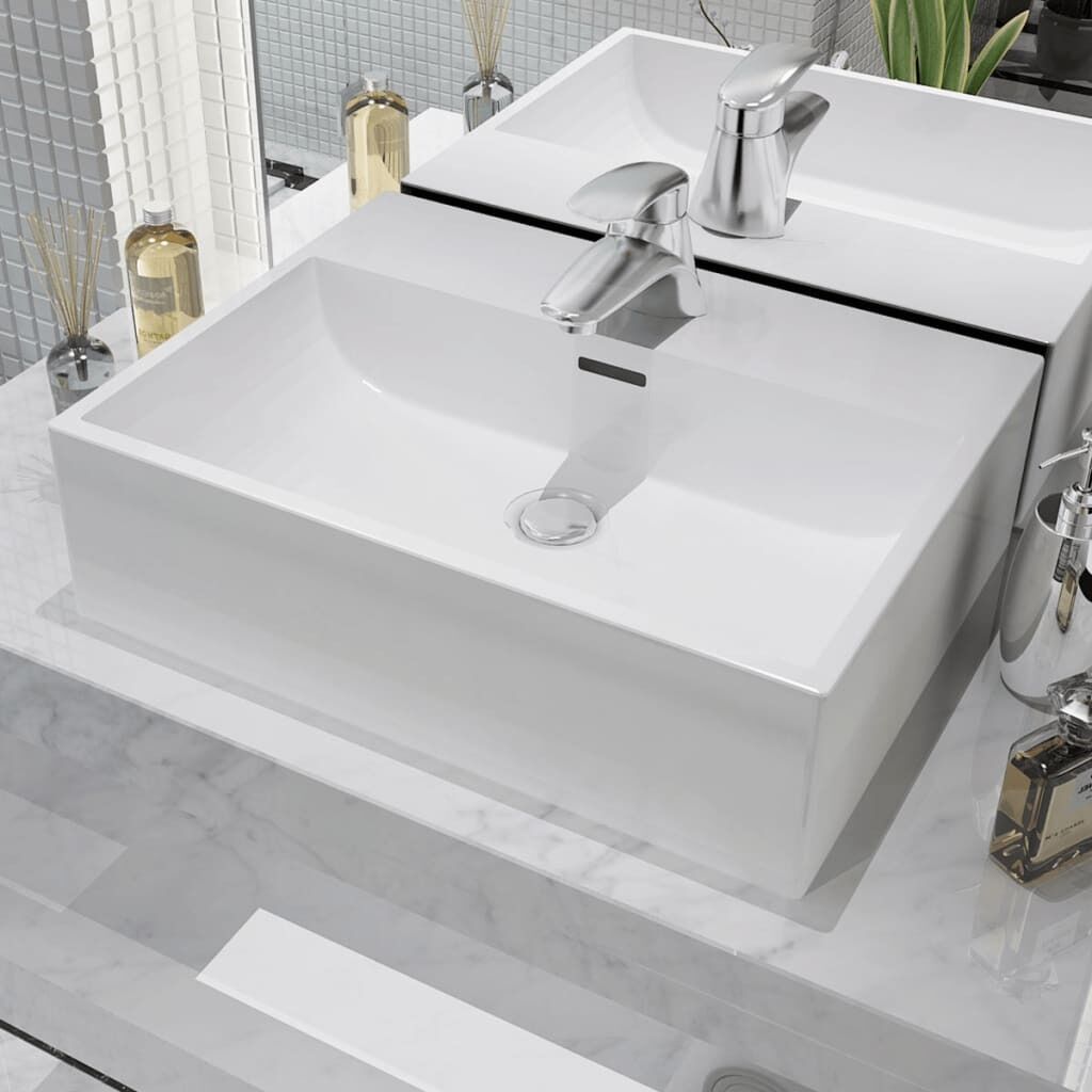 This wash basin, made of premium ceramic, will be a stylish addition to any bathroom, washroom or powder room. Its glazed surface brings itself a modern yet elegant design. This artistic ceramic basin is more than just a practical vessel for everyday use, but it is an adornment for your living space. It will definitely suit any interior style. In addition, the basin is quite easy to clean. An overflow is equipped to flow water out when it gets too full. A faucet hole of diameter 3,7-3,8 cm is included to install a tap. The drain hole is 4,5 cm in diameter. Please note that the tap and the drain are not included in delivery. If you want to wall mount this basin, it needs to be fixed by bolts.