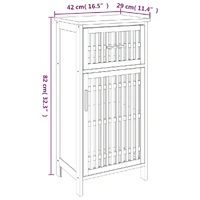 This bathroom cabinet, featuring spacious storage space, is a great addition to your bathroom, giving it a tidy and striking appearance! Solid walnut wood: Solid walnut wood is a dense and robust wood that is highly resistant to wear and tear, well known for its characteristic colour and attractive grain patterns.Ample storage space: The bathroom unit has 2 compartments and a drawer, providing ample storage space for keeping your daily essentials well organised.Practical door: Keep your space clutter-free by hiding small essentials behind the door of this bathroom cupboard.Great ventilation: The door and drawer of the toilet cabinet are designed with a lattice look, which guarantees optimal ventilation. Warning:In order to prevent overturning, this product must be used with the wall attachment device provided. Note:Each product comes with an assembly manual in the box for easy assembly.