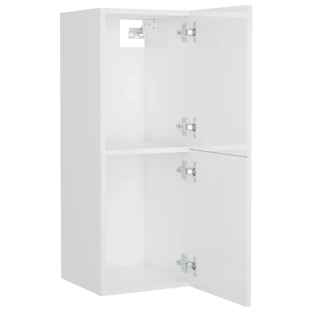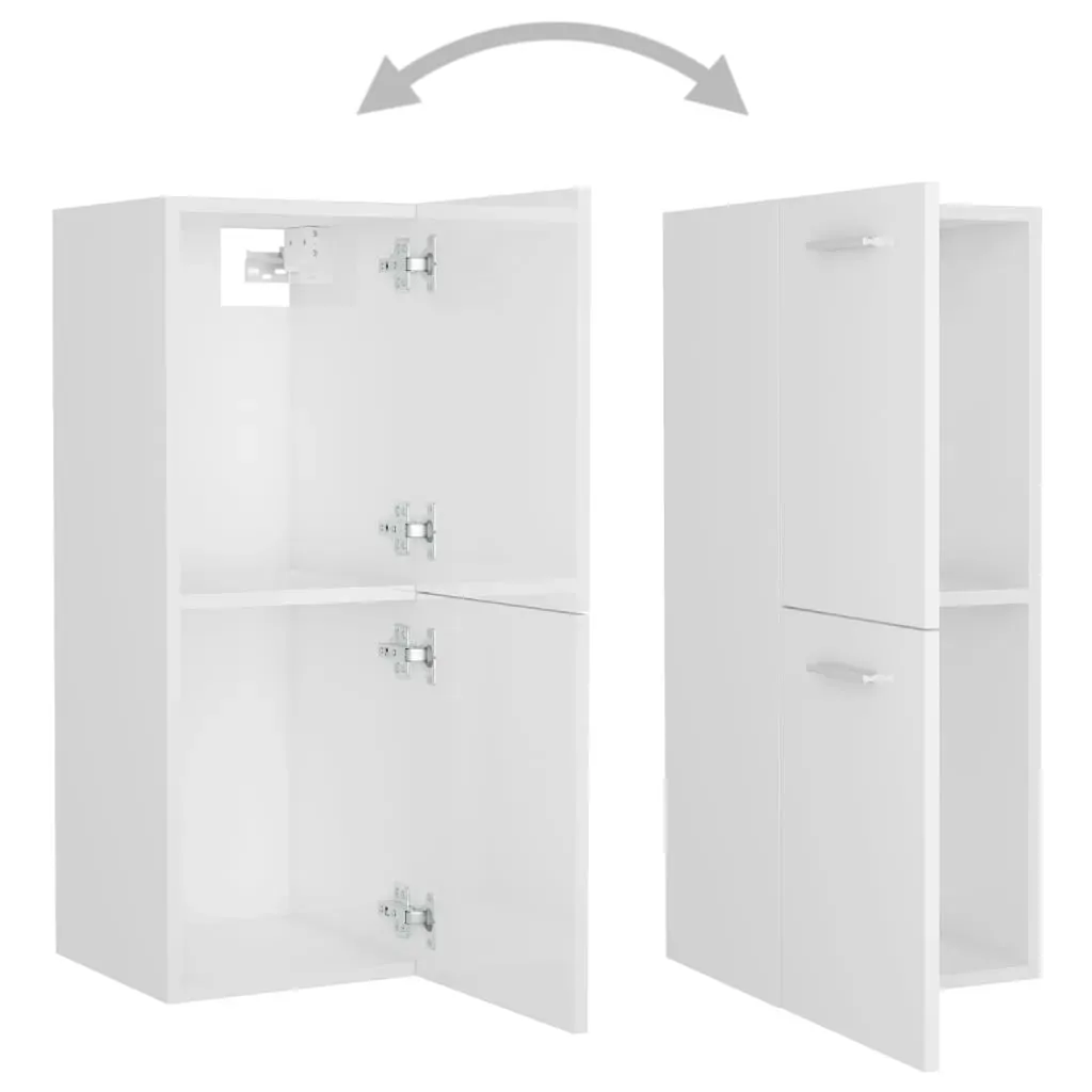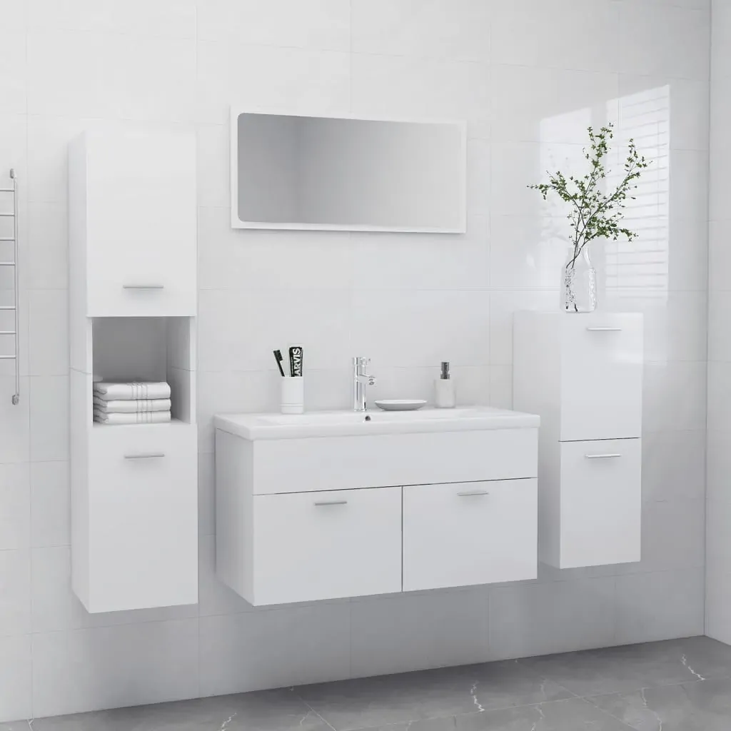 With this stylish bathroom furniture set, you can create additional storage space for your bathroom with a striking, tidy appearance. The clean lines and sleek design blend into your bathroom perfectly. The furniture set consists of a sink cabinet, a low cabinet, a high cabinet, and a mirror. The chic basin cabinet has 1 compartment, and the top of it is ideal for placing the sink. The high cabinet features a total of 5 compartments and 2 doors while the low cabinet has 2 compartments. These 2 cabinets offer various storage options and extra space to store items in your bathroom. The mirror also adds an excellent appearance to your home decor. Additionally, this bathroom set is easy to clean with a damp cloth. Please note: The sink, tap, and drain are not included in the delivery.