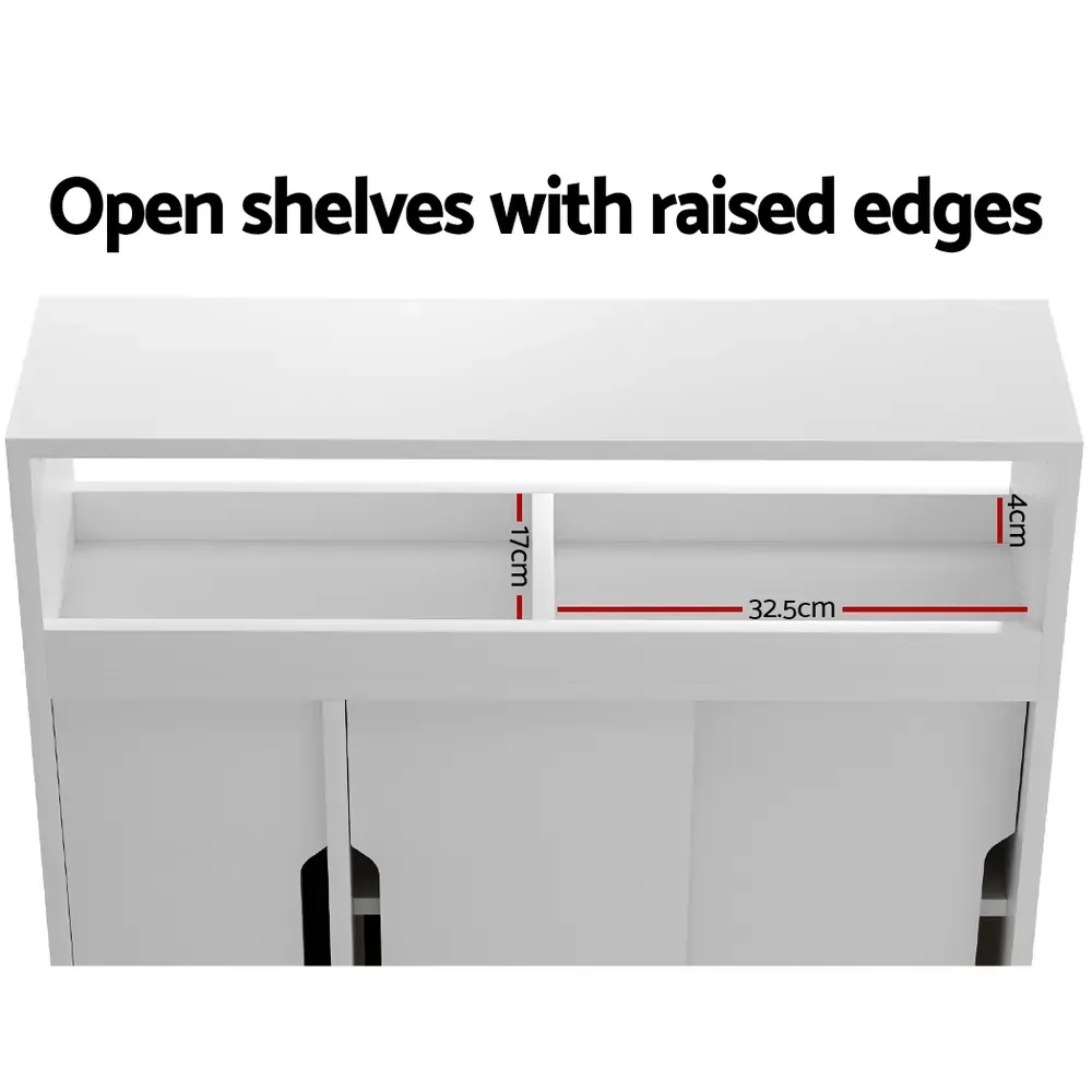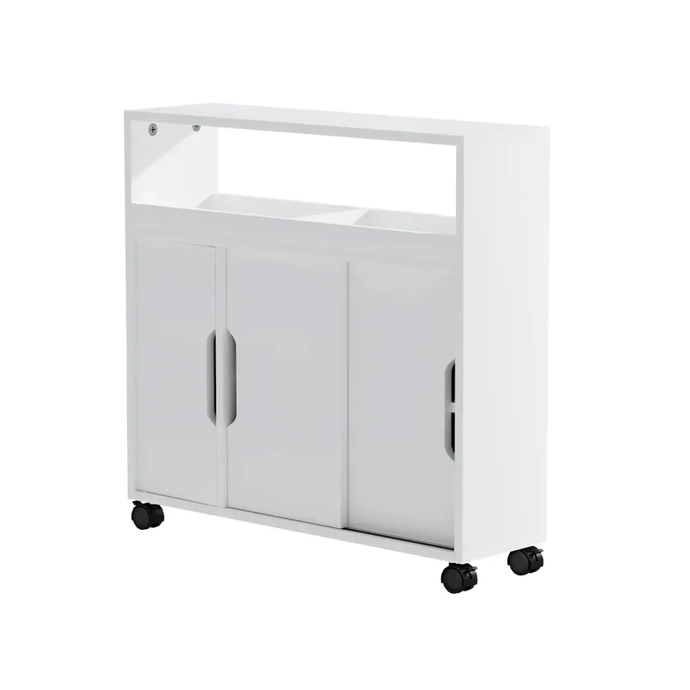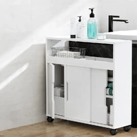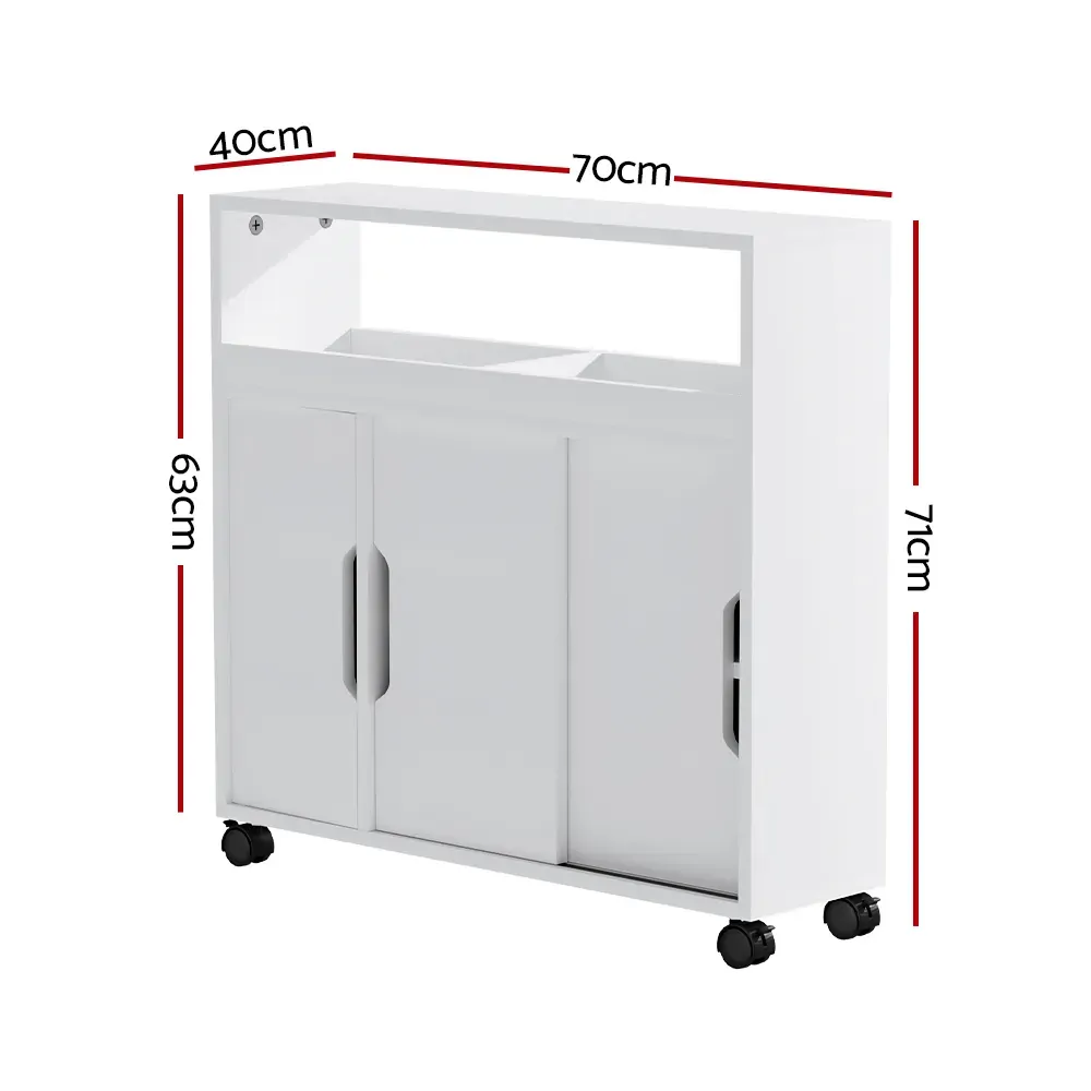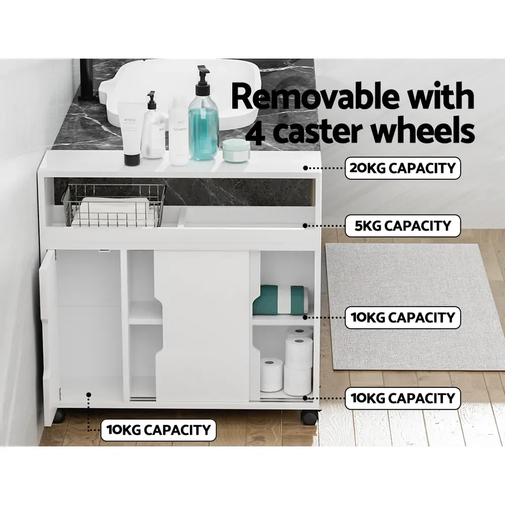 Keep your bathroom organised with an Artiss Bathroom Storage Cabinet. This neat and tidy storage solution is made from durable particleboard for long-lasting use. A combination of three cabinets and two open shelves with raised edges gives you plenty of storage for your bathroom essentials. The cabinets feature a combination of swinging and sliding doors with curved handles for ease of use. Four smooth castor wheels mean you can place it anywhere in your bathroom with ease. Easy to install and easy to clean, the Artiss Bathroom Storage Cabinet is just what your bathroom needs to stay tidy.