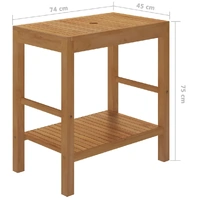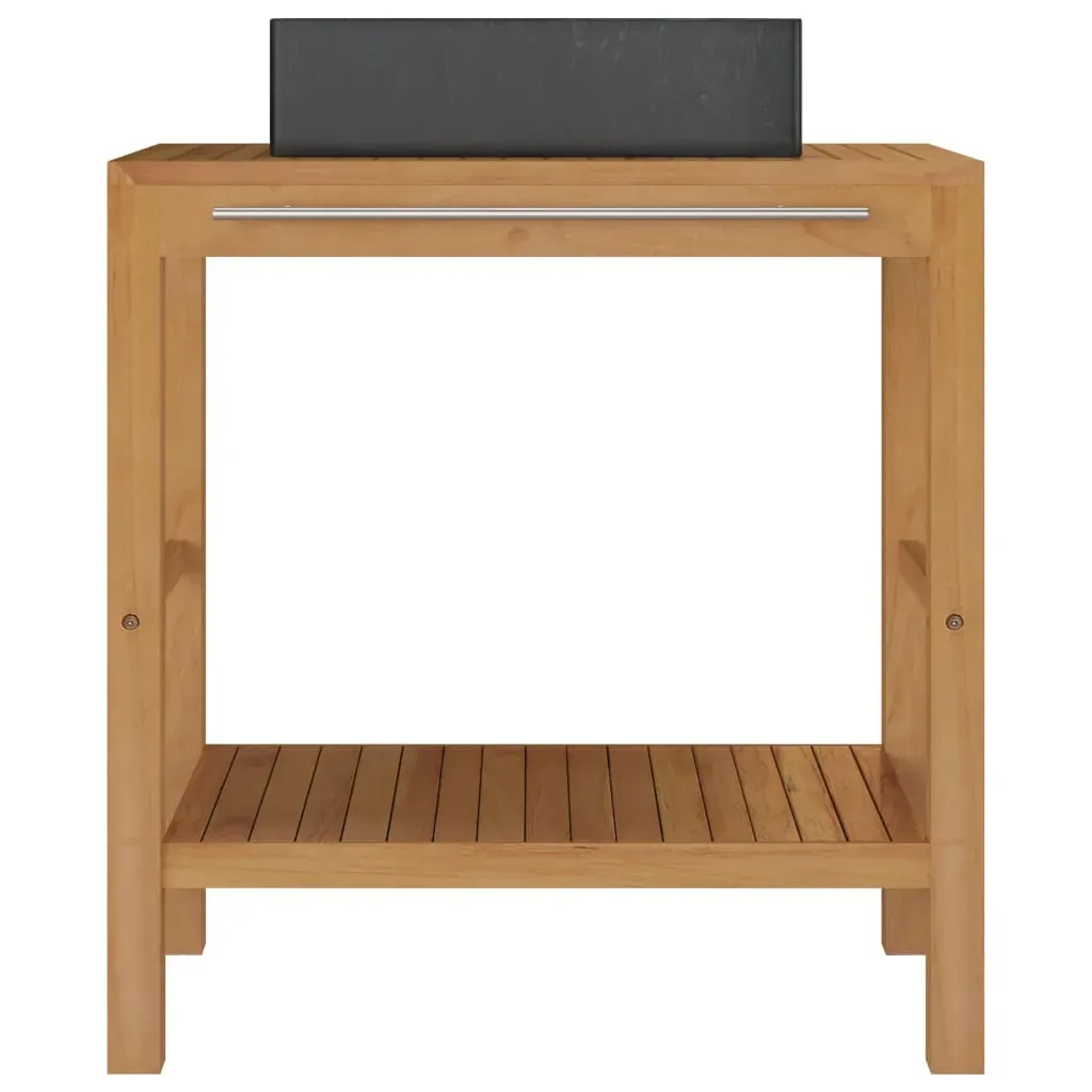 This stylish wooden bathroom cabinet with a sink with beautiful yet simplistic style is a perfect match for your bathroom or washroom decor. The sink cabinet is constructed from solid teak wood which is durable and sturdy enough to place a basin on the top, including other bathroom accessories. The vanity cabinet has a handrail for hanging towels or clothes. It also has four supporting legs to ensure stability and dryness above the ground. The striking basin is user-friendly for everyday use and is a wonderful adornment for your living space. Fully handmade of graceful marble, the basin is extremely sturdy with an elegant look. Additionally, the washbasin is very easy to clean. The cabinet fits perfectly under your sink and makes bathroom storage quite convenient. Note: Marble is a natural product and colour differences might therefore occur. The real product might be lighter or darker than in the photos and sometimes there might be a mix of colours in the product.