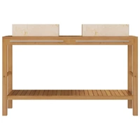 This stylish wooden bathroom cabinet with two sinks with a beautiful yet simplistic style is a perfect match for your bathroom or washroom decor. The sink cabinet is constructed from solid teak wood which is durable and sturdy enough to place a basin on the top, including other bathroom accessories. The vanity cabinet has a handrail for hanging towels or clothes. It also has four supporting legs to ensure stability and dryness above the ground. The striking basin is user-friendly for everyday use and is a wonderful adornment for your living space. Fully handmade of graceful marble, the basin is extremely sturdy with an elegant look. Additionally, the washbasin is very easy to clean. The cabinet fits perfectly under your sink and makes bathroom storage quite convenient. Note: Marble is a natural product and colour differences might therefore occur. The real product might be lighter or darker than in the photos and sometimes there might be a mix of colours in the product.