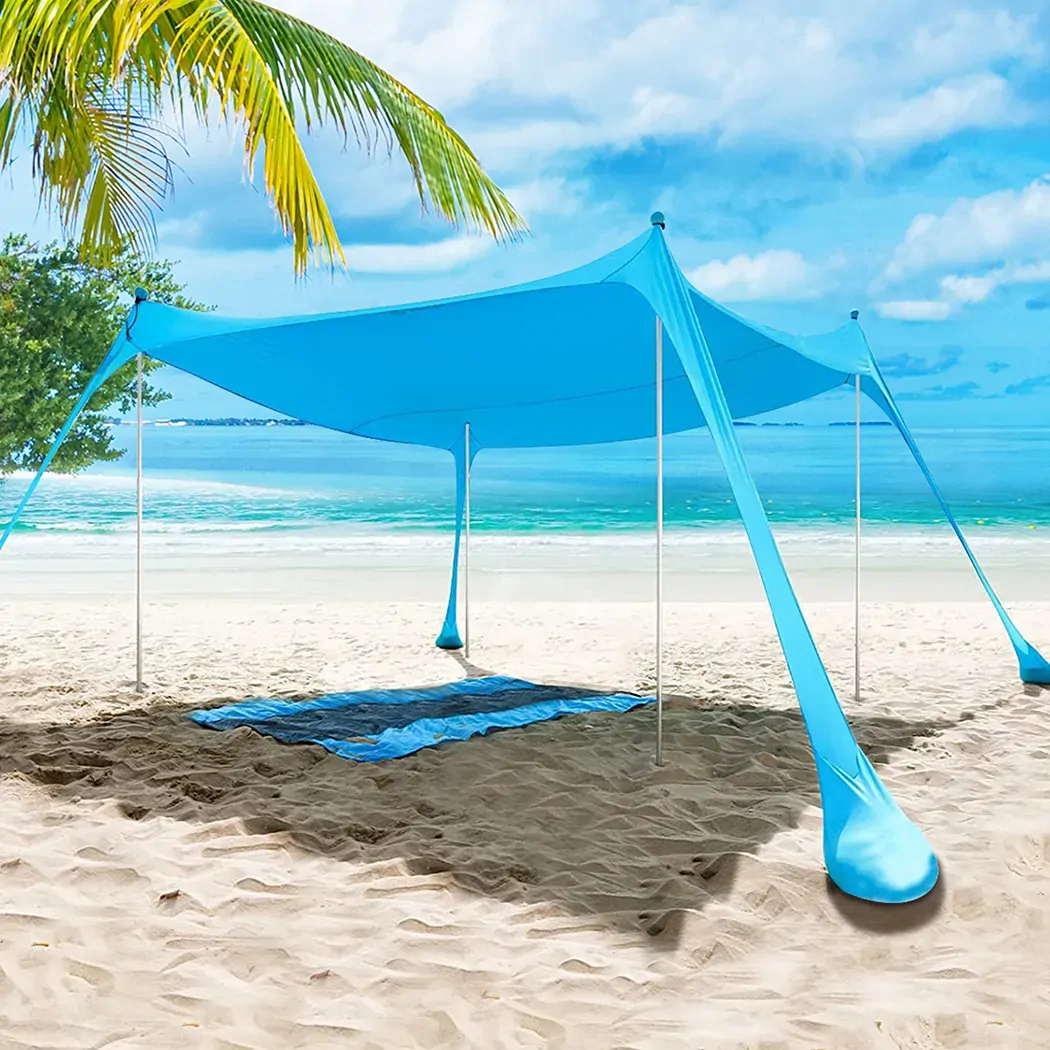 Enjoy the shade in your beach tent for up to 6 people. You and your family are at the beach, you’ve enjoyed a swim and dried off by lying on your towel. But now you’re too hot. What to do? Pop up your portable shelter and enjoy the shade.